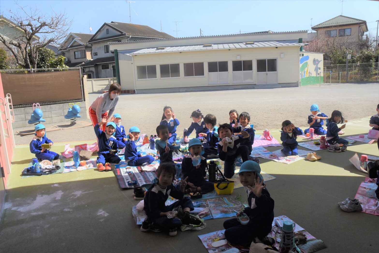 天気がよく、テラスで昼食やおやつを食べました。素敵な中身のお弁当にみんなウキウキ♪お母さんの作ってくれたお弁当が一番美味しい!と声を揃えて行っていましたよ(^O^)