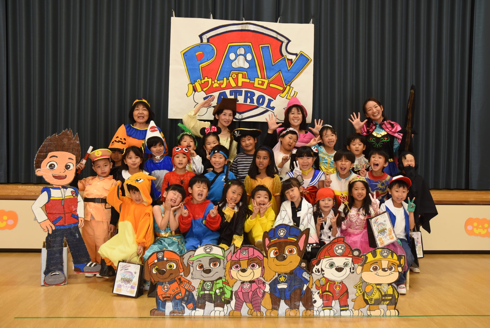 ハロウィンパーティーを行いました! 今年のハロウィンパーティーは「パウパトロール~いたずらおばけをつかまえろ!~」というテーマで行いました。沢山練習した「Trick or Treat」の合言葉を言い、お菓子をもらいました。玉入れゲームやボックスパズルにも挑戦し、パウパトロールからのミッションをパウっと解決し楽しみました!
