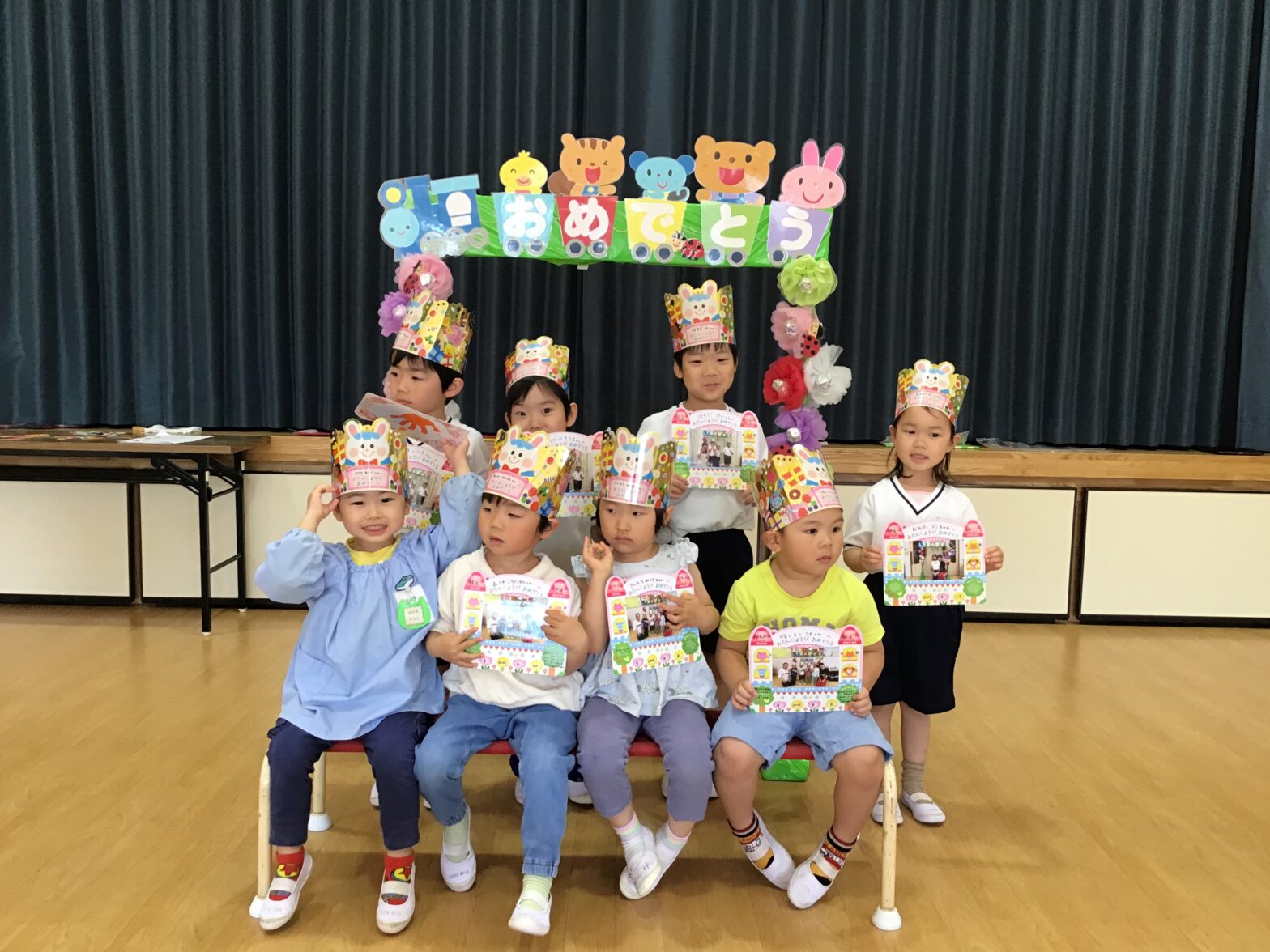 今日は幼児クラスで、4月のお誕生日会を行いました。4月生まれのお友だちは、恥ずかしそうにしながらも笑顔でインタビューに答えてくれました。先生からの出し物では「大きな大根」のお話のパネルシアターを見ました。みんなが大きな声で「うんとこしょ」と掛け声を協力してくれたおかげで大きな大根が抜けました!また、色水マジックで透明の水がジュースに変わると、子どもたちは驚いていました。お誕生日おめでとうございます。素敵な一年になりますように♪
