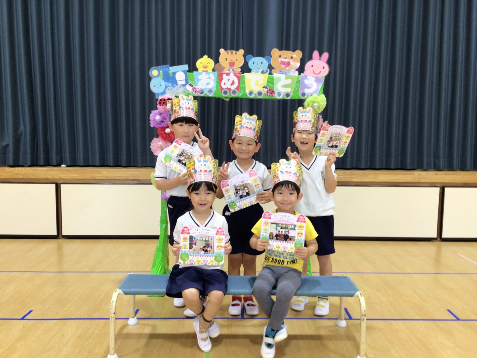 6月のお誕生日会を行いました。6月生まれのお友だちは、大きな声でインタビューに答えてくれました。「うさこちゃんのお誕生日」という催し物に参加しました。うさこちゃんのお誕生日の日にお家に遊びに来たお友だちは傘で顔が隠れていて、誰なのかな?とクイズのように楽しむものでした。その後のお友だちクイズでは、6月生まれのお友だちや先生の小さい頃の写真を見て、誰なのかを当ててもらいました。先生たちの写真はなかなか難しかったようですが、お友だちと「○○先生かも!」と話し合いながら盛り上がっていました。